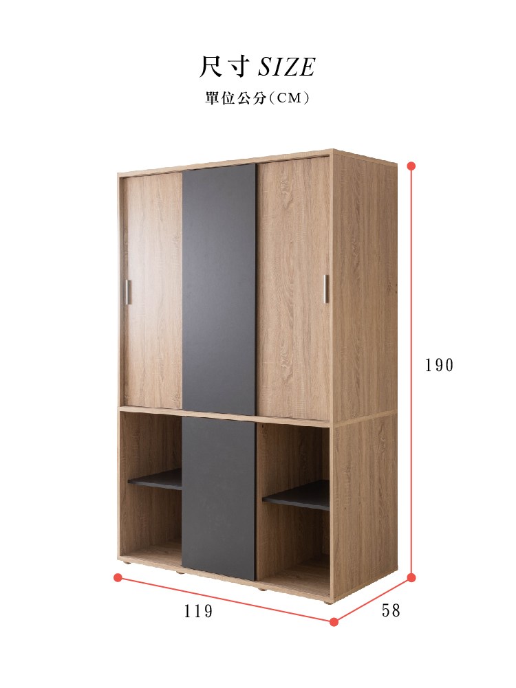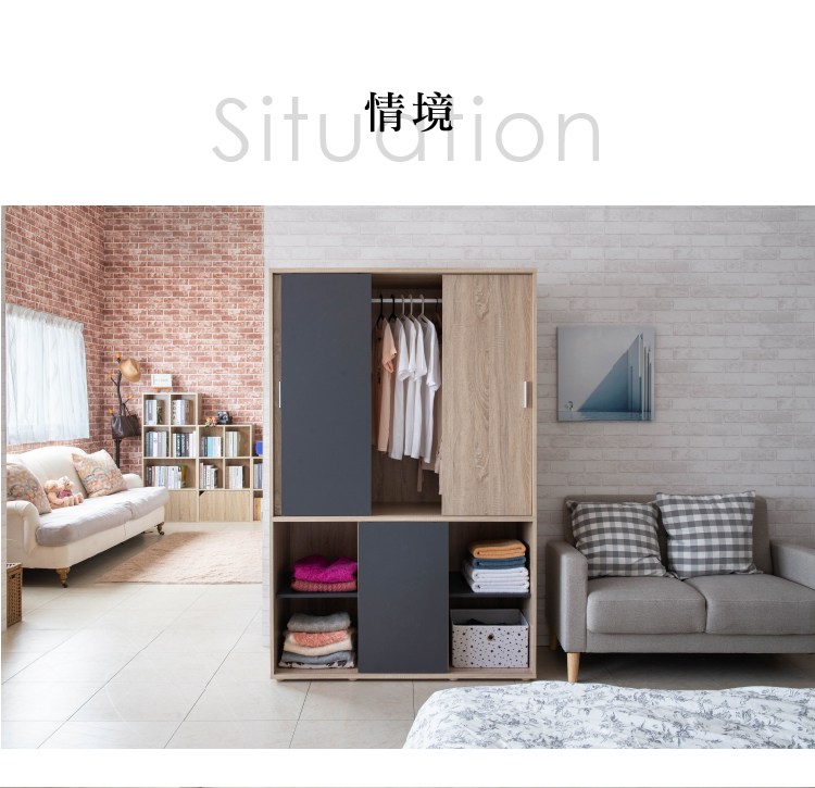 直人木業-TESS淺橡極簡風四抽滑門衣櫃120公分