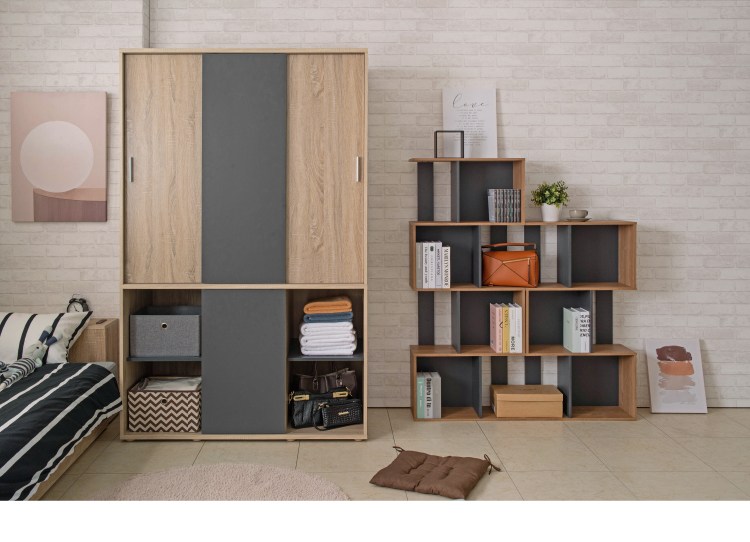 Boden-喬西4尺灰橡色推/拉門六抽衣櫃(雙吊桿)