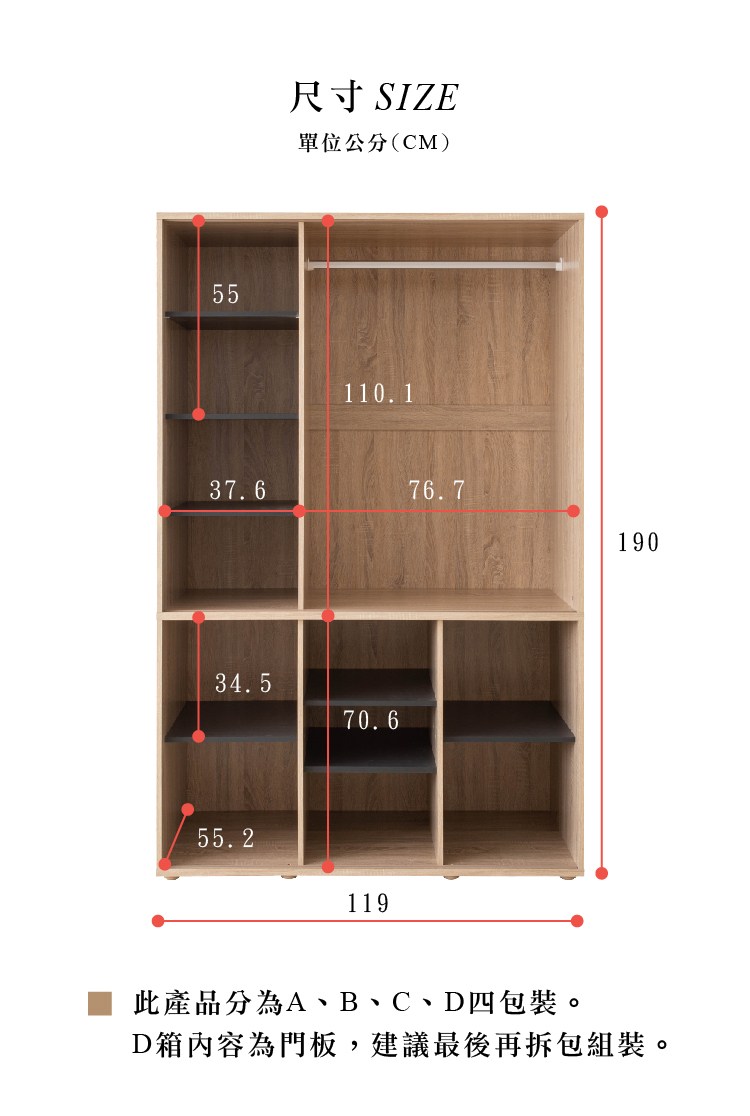 MUNA家居 特洛伊4X7尺衣櫃(L707) 117X53.5X203cm