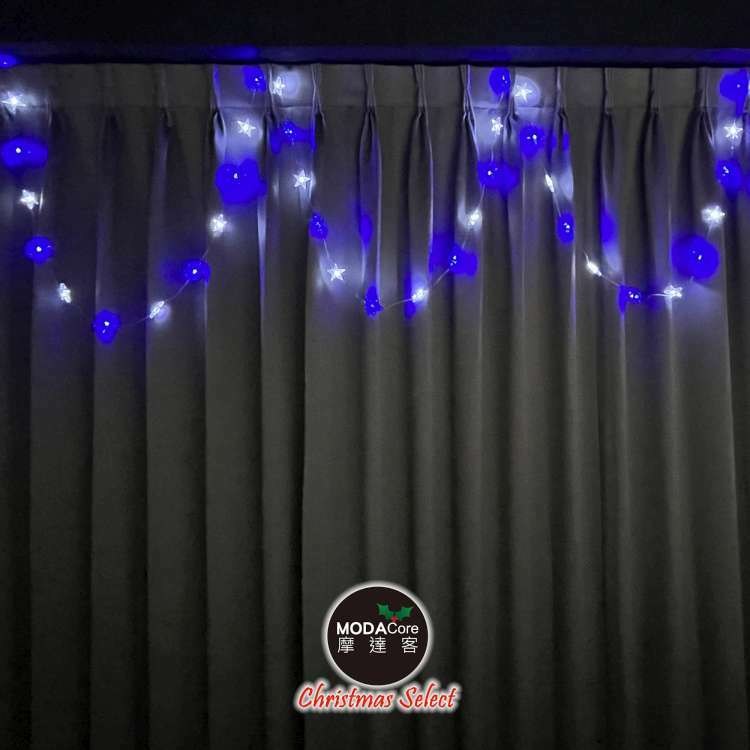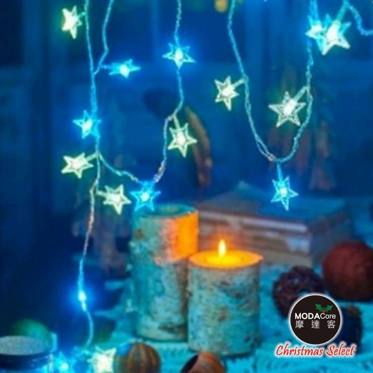 點我下載摩達客-50燈LED皮線燈串(USB+電池盒兩用充電/五角星星-藍白光)5M