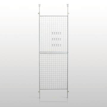 台灣製造,日本同步販售。不佔空間,實用收納,安裝高度的範圍215~312cm。可佈置於玄關、客廳、房間、廚房、浴室、畫室、藝廊。使用日規頂天防震固定器,專為耐震防落的彈簧結構,讓收納網架彈性緩衝,吸收震動,更加安全穩固,不易傾倒。支架獨立可調高度,能在不同高度落差下(如樑柱)安裝收納架。內六角螺絲,相對十字形螺釘,它有六個受力面,能鎖的更緊密不滑牙,結構更加牢固。加大網架設計,增加吊掛收納的空間,盡情佈置您的居家風格。附贈日規掛鉤15入,與S掛鉤不同,它不會搖晃,方便吊掛物品不掉落,每一個承重 0.5kg。