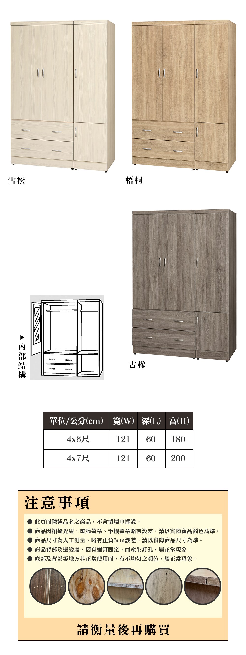 AS雅司-DoubleHappy4×6尺雪松下二抽衣櫥120.6*58.2*180cm