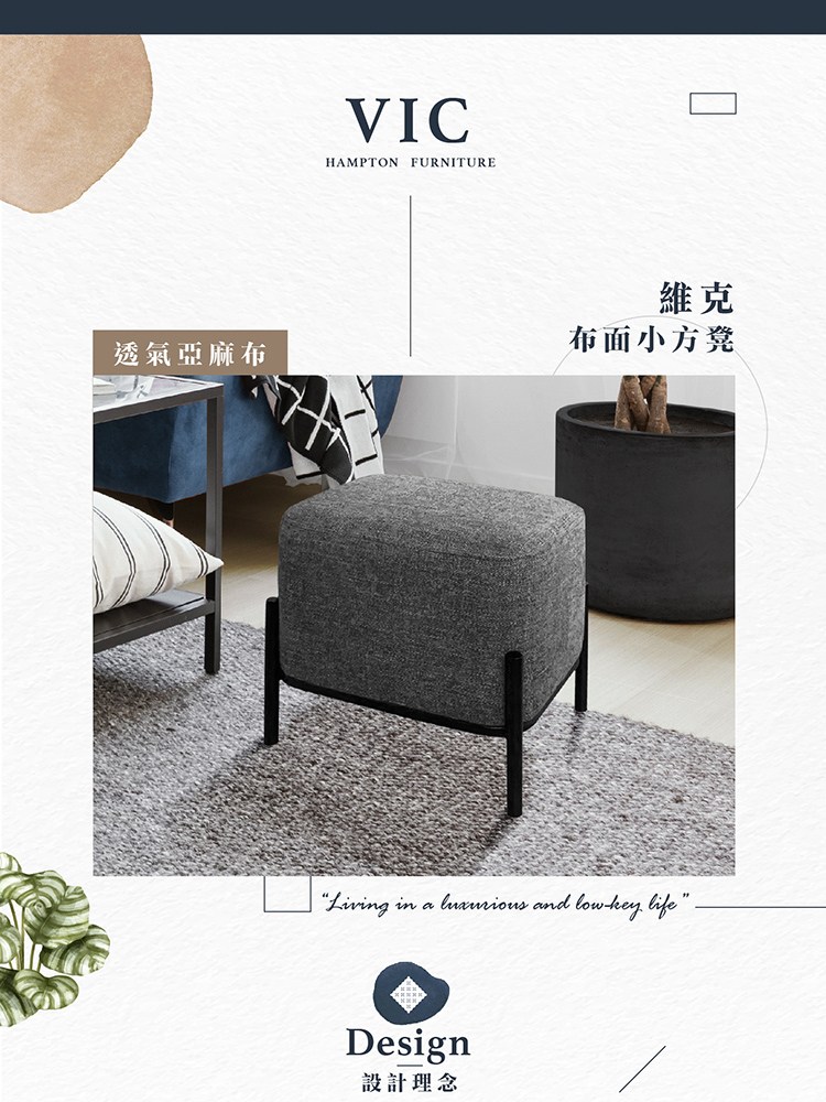 Hampton 漢汀堡 維克方凳 厚實質感亞麻布面 穩固黑鐵椅腳 石頭灰