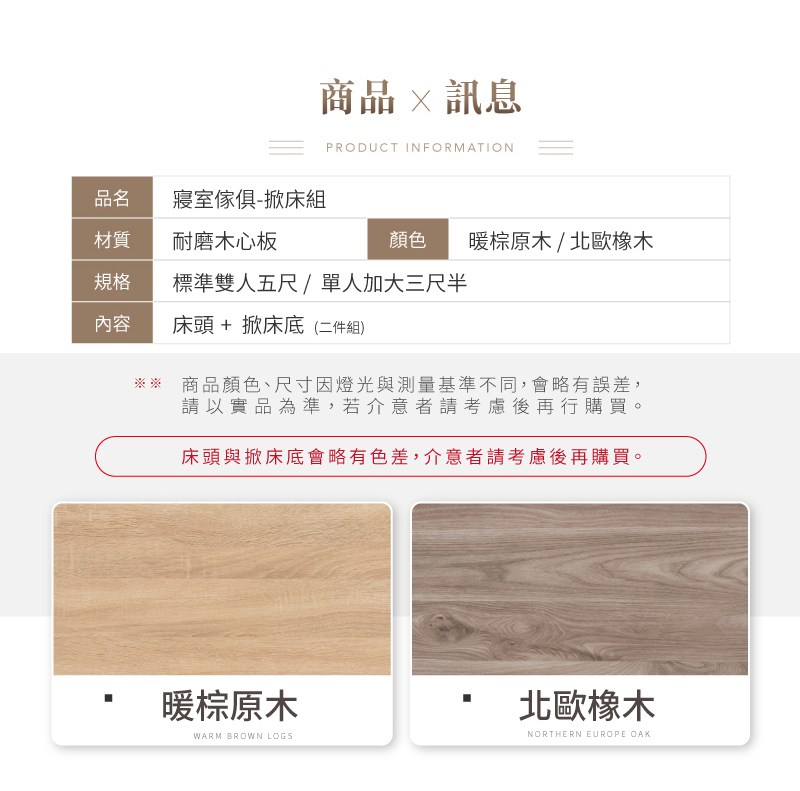 【IDEA】日式和風5尺雙人床房間2件組床頭+床底(收納床架/2色)<暖棕原木
