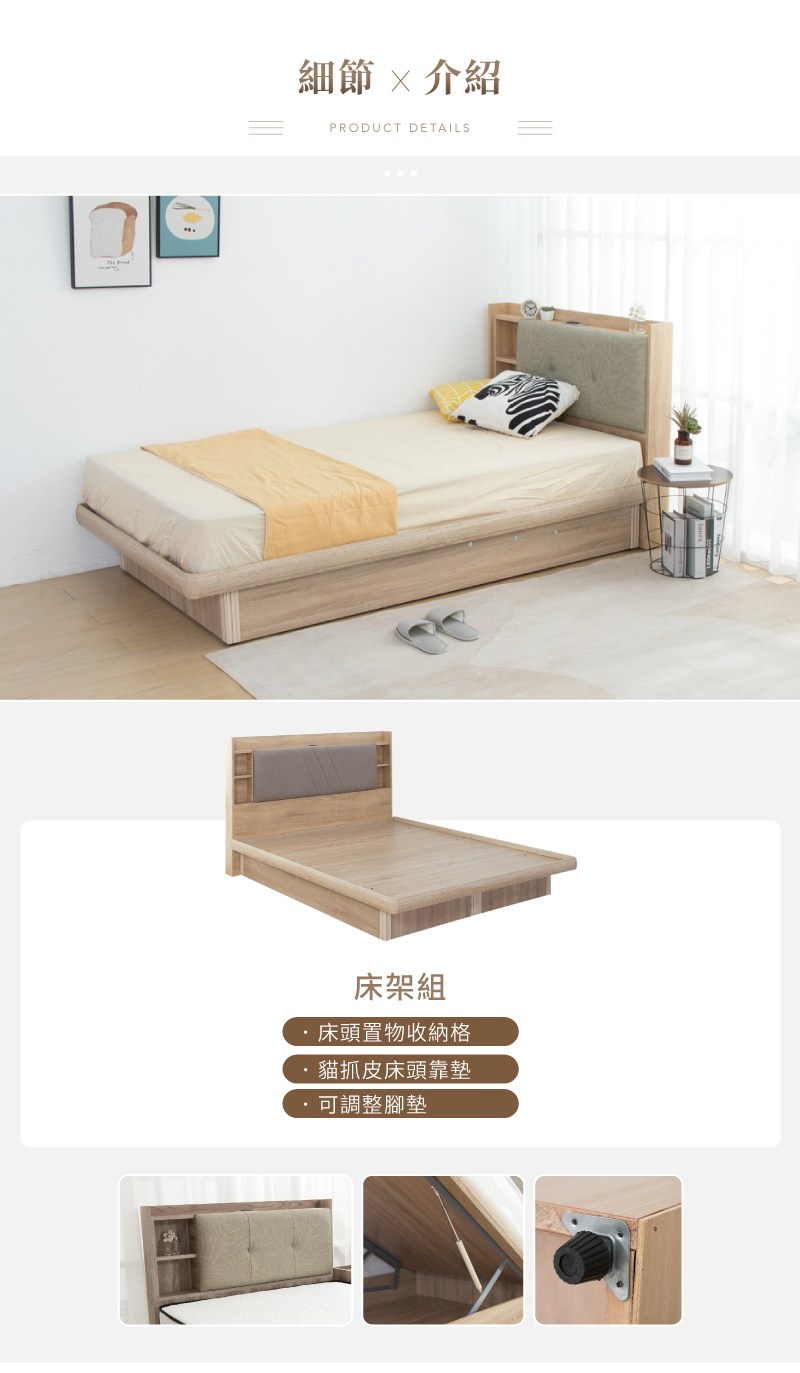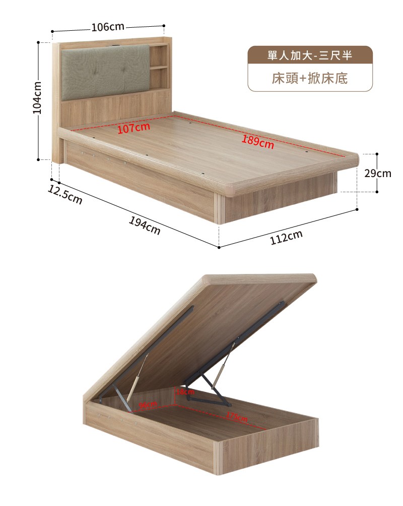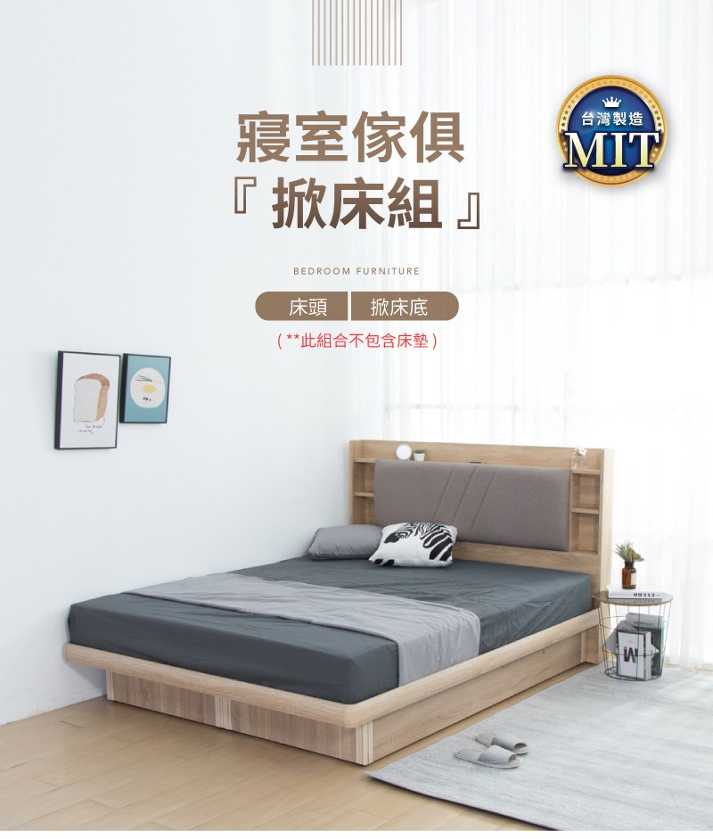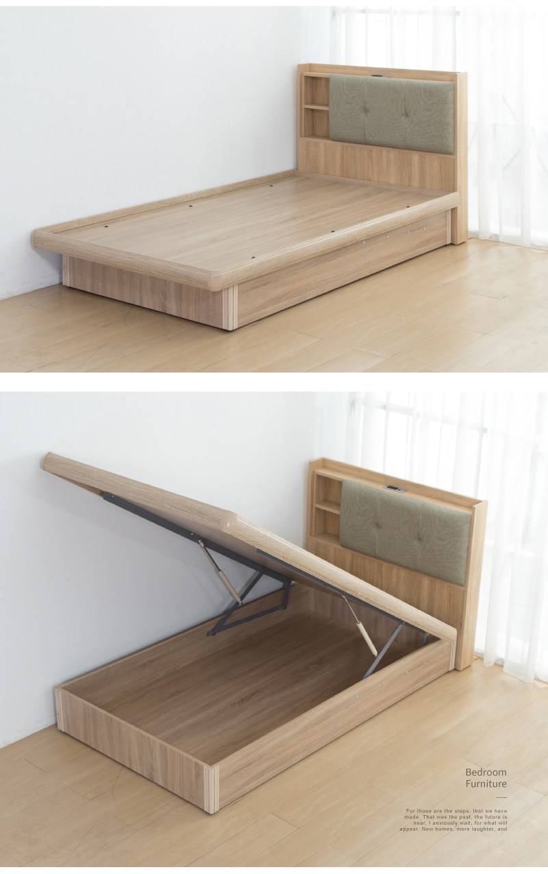 傢俱工場-吉米 MIT木心板床組 (插座床箱+床底) - 單大3.5尺梧桐