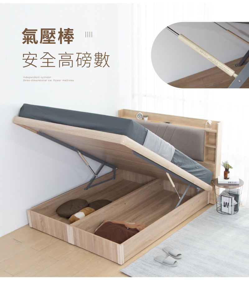 傢俱工場-吉米 MIT木心板床組 (插座床箱+強化底)-雙大6尺古橡