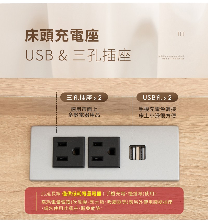 IHouse-沐森 房間2件組(插座床頭+床底) 單大3.5尺古橡