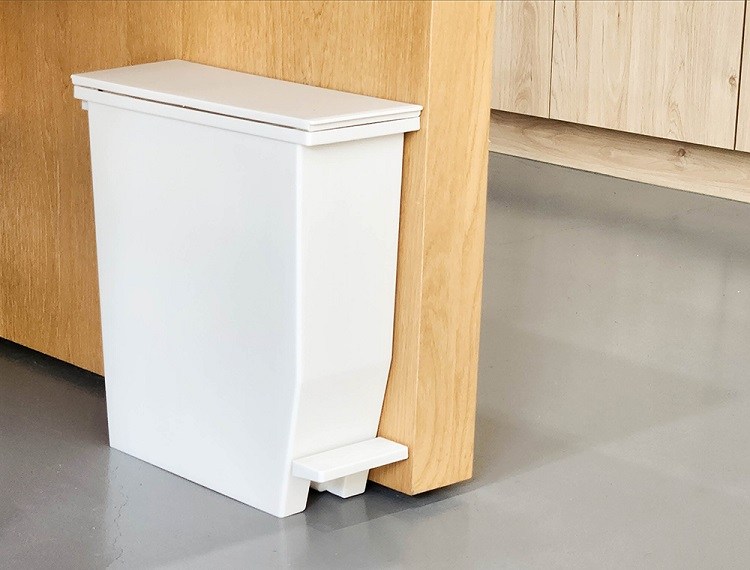 【日本天馬】日本製 e-LABO深型掀蓋式垃圾桶-45L-白