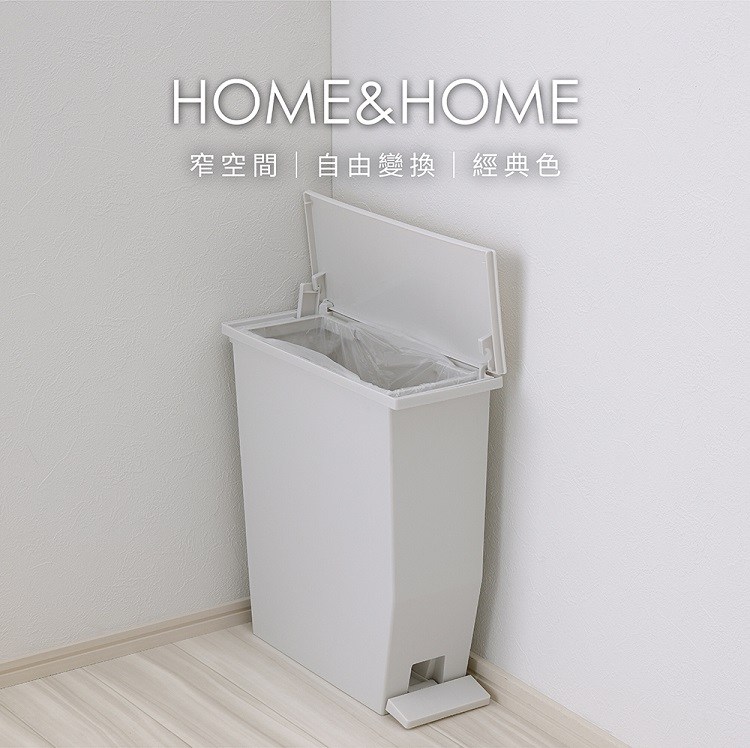 H&H橫向踩踏式掀蓋垃圾桶 45L白色