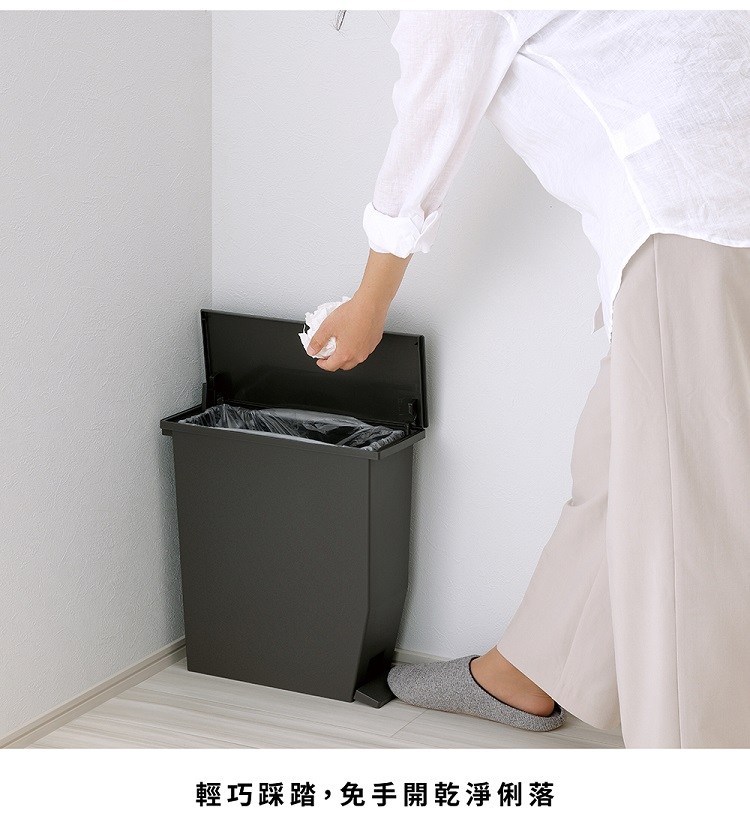 日本RISU SOLOW日本製腳踏式對開蓋分類垃圾桶-35L-2色可選雅痞黑