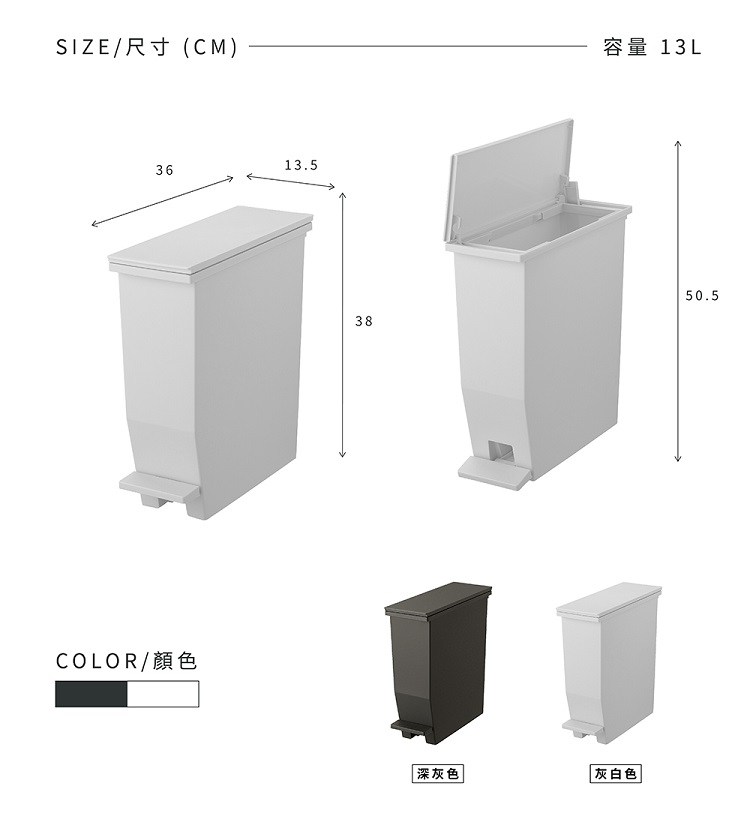 【日本RISU】(H&H系列)踩踏垃圾桶13L灰色