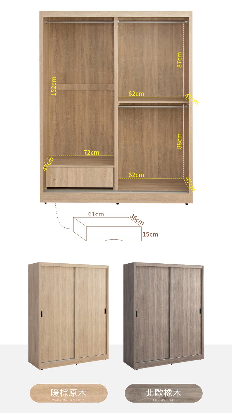 IDEA MIT凡賽4X6尺木質收納抽屜滑門衣櫃/衣櫥(3色任選)