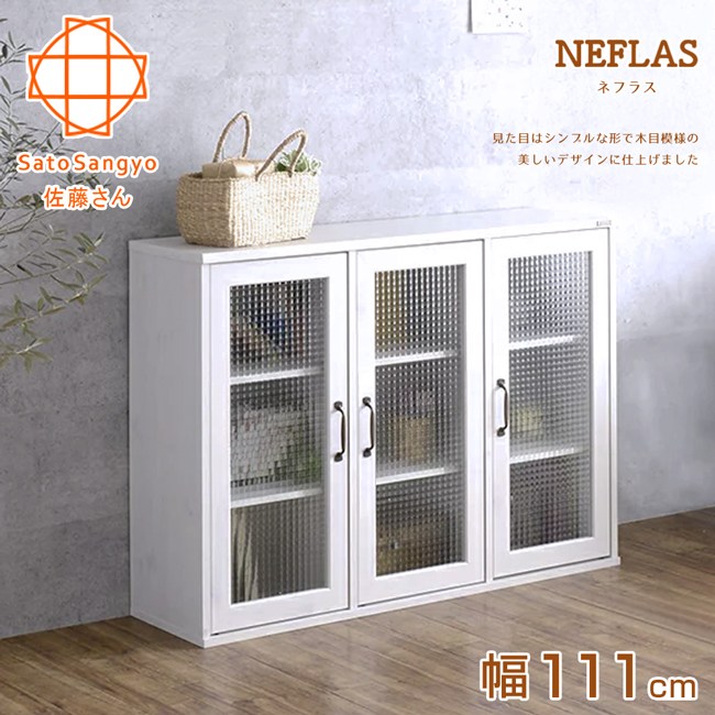 【Sato】NEFLAS白之戀三門玻璃收納櫃‧幅111cm