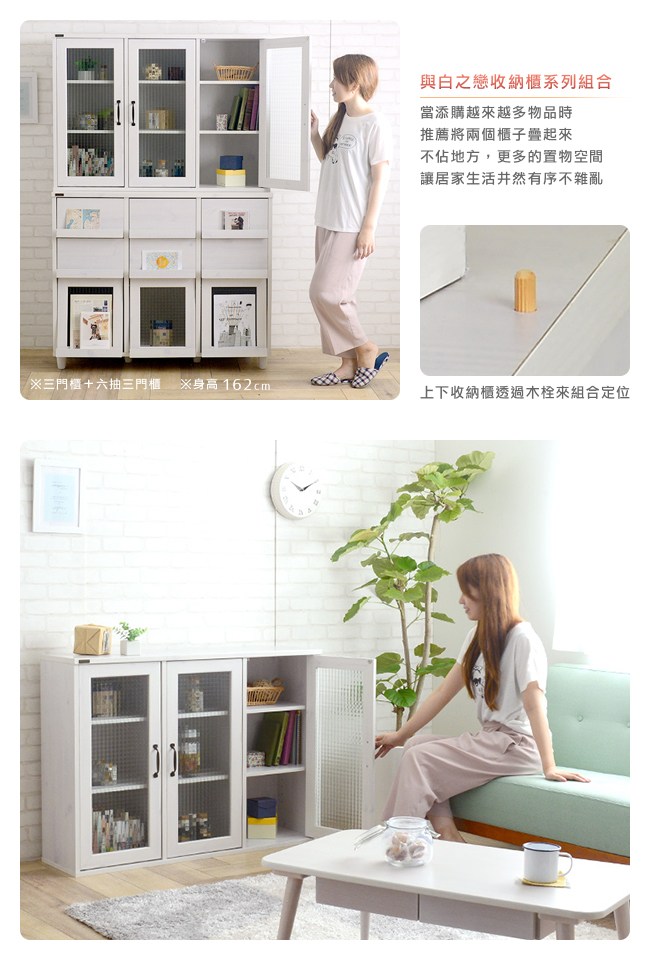 當添購越來越多物品時,推薦將白之戀收納櫃系列組合在一起,不佔地方,更多的置物空間,讓居家生活井然有序不雜亂。