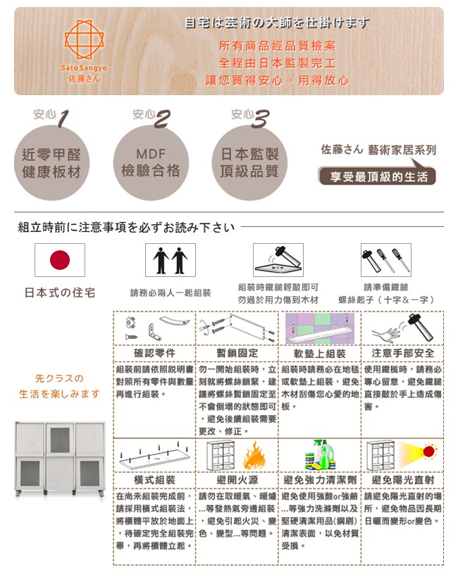 自 1918 年創立於日本,從雜貨出發,到 1973 年正式開創家具事業版圖。【Sato】的足跡從亞洲走到美洲,自然也跨入歐洲。【Sato】為日本人經營的工廠,名聞世界的日本式管理,幾十年來磨家具一劍,注重所有細節與品質,堅持良好的管理。始終嘗試幫助每一個使用者,讓人們心情舒暢,推動幸福宅是其目標。美感居家、簡單生活帶來的小確幸,【Sato】靜靜撫慰煩躁的人心。