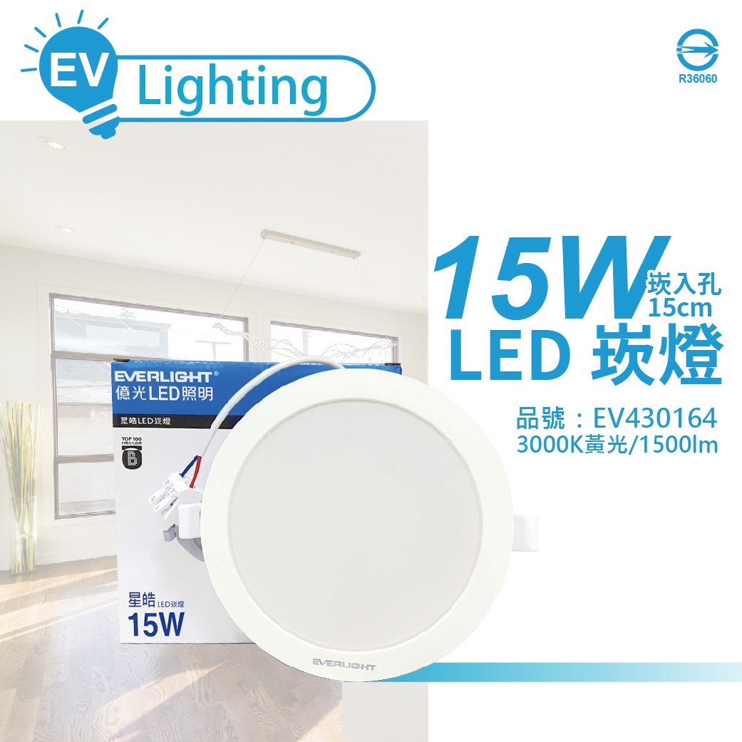 10入 EVERLIGHT億光 LED 星皓 15W 830 黃光 全電壓 15cm 崁燈