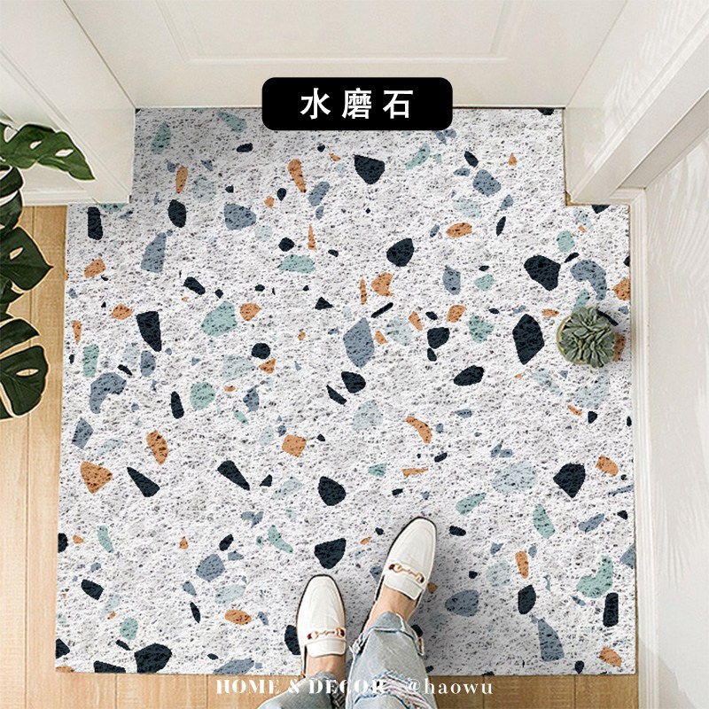 【好物良品】120x120cm_獨家設計大尺寸可剪裁玄關絲圈刮泥地墊-水磨石