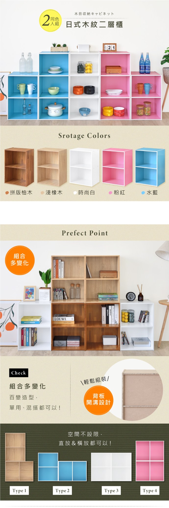 《HOPMA》日式木紋二層櫃(2入) 台灣製造 儲藏收納櫃 二格書櫃 展示空櫃-粉紅