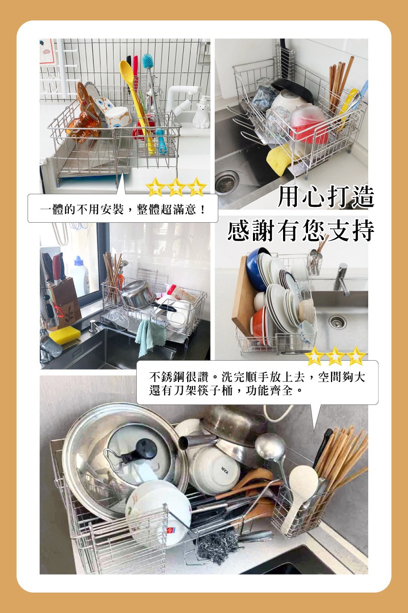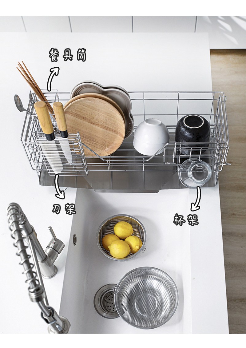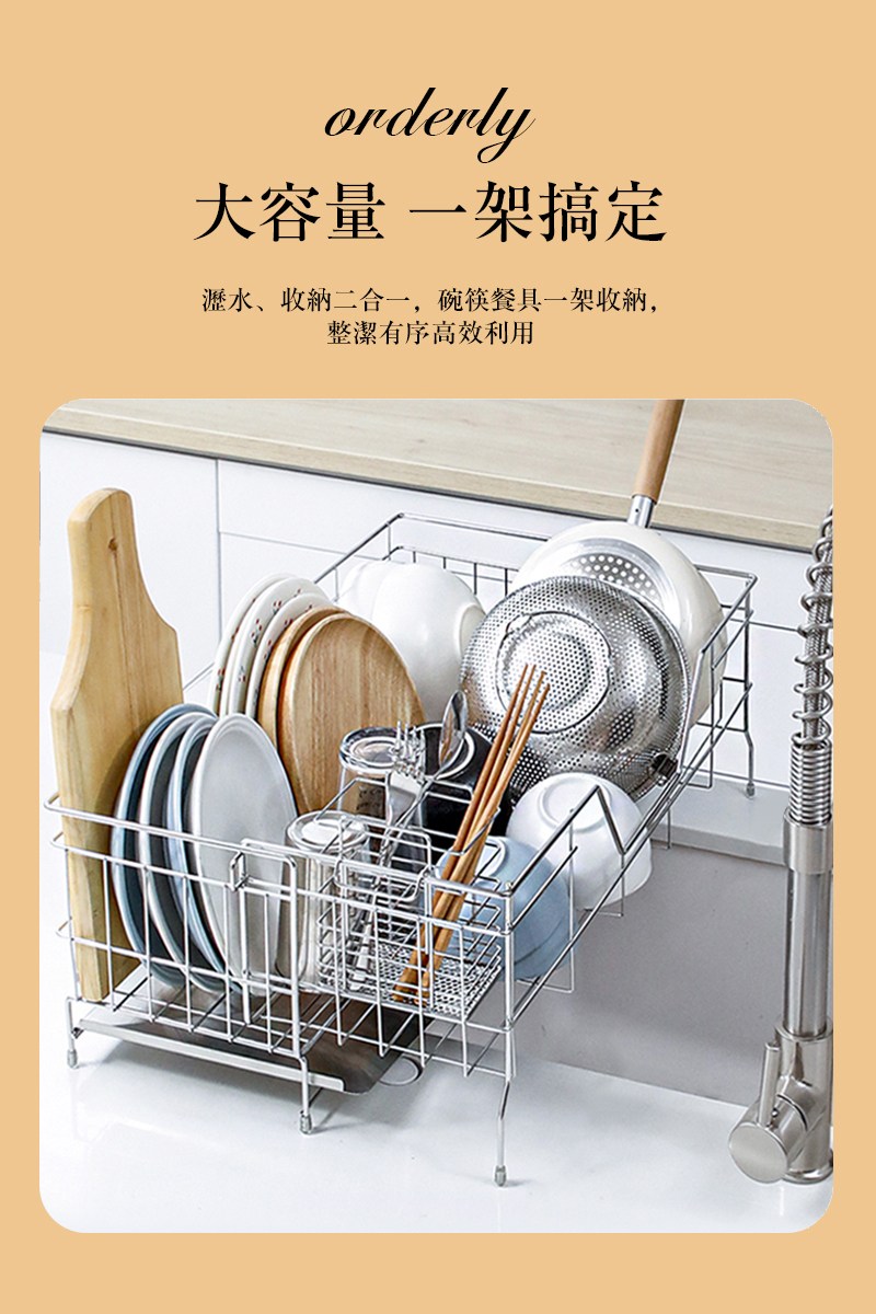 304不銹鋼瀝水架廚房碗架水槽邊碗碟餐具收納架免安裝臺面置物架