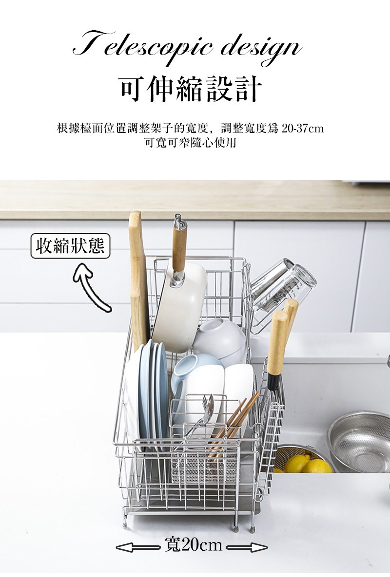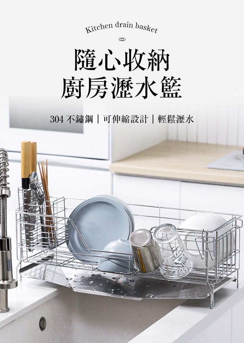 【慢慢家居】304不鏽鋼-廚房水槽可伸縮瀝水籃304不鏽鋼瀝水籃