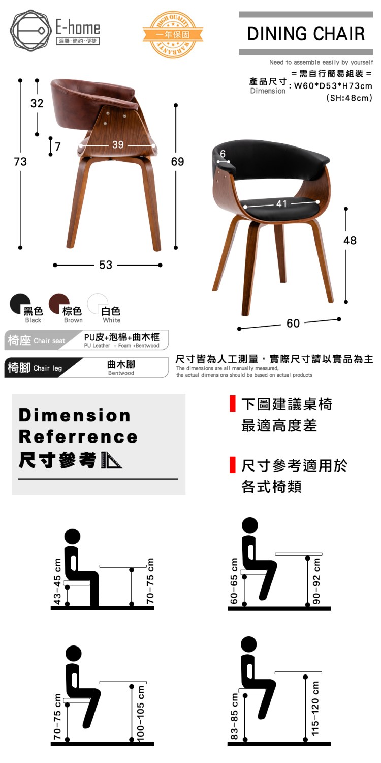 E-home Vanilla維妮拉PU面扶手曲木休閒餐椅-三色可選