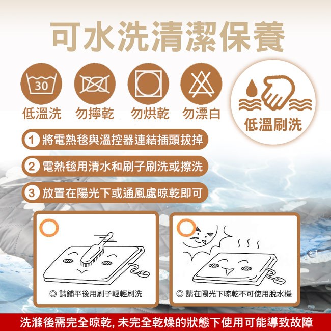 *使用電毯時請鋪平使用,勿對折使用