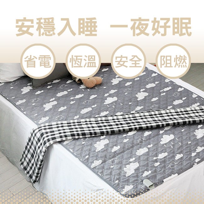 *將電熱毯鋪在床單下或可蓋上一件薄毯(太厚會引影響溫度及時上傳),上面再蓋上棉被以保持溫度