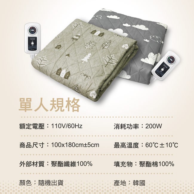 【韓國甲珍】7段式恆溫單人電熱毯 KBR3600