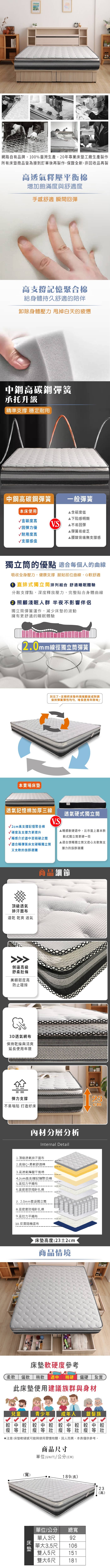 《新之森林》雅典多支撐蜂巢款獨立筒床墊-雙人加大6x6.2尺