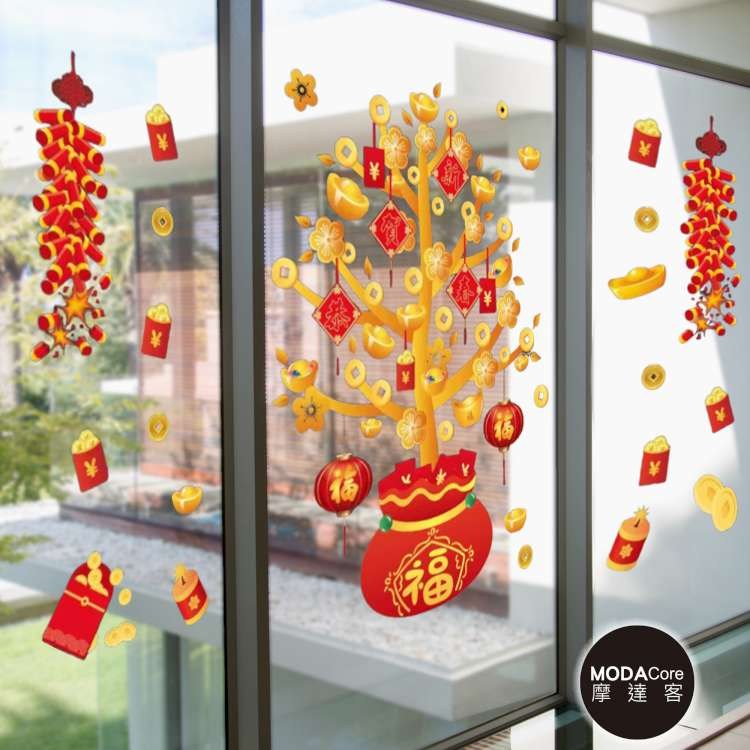 新年春節靜電貼裝飾品植絨門貼剪紙窗花貼過年福字貼畫玻璃貼