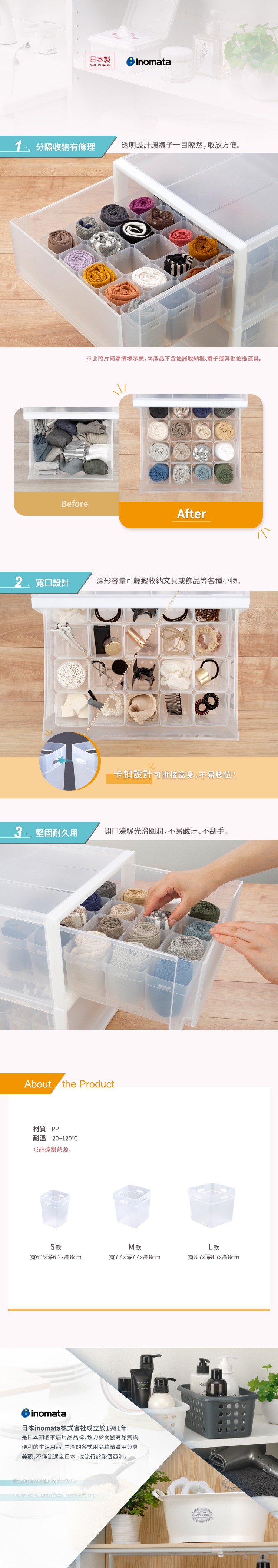 【日本INOMATA】日製拼接式內衣褲/襪子/小物分隔收納盒-多款可選S(12入)