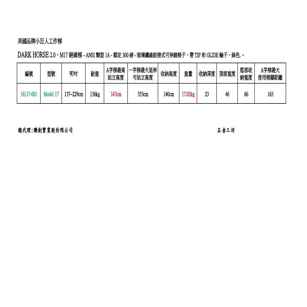 美國品牌小巨人(16117-001) M17絕緣梯 耐重136KG