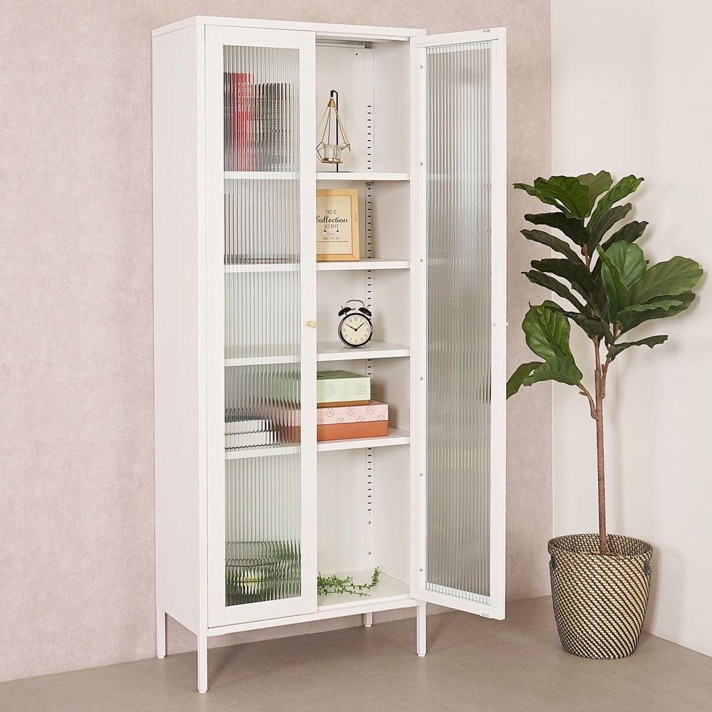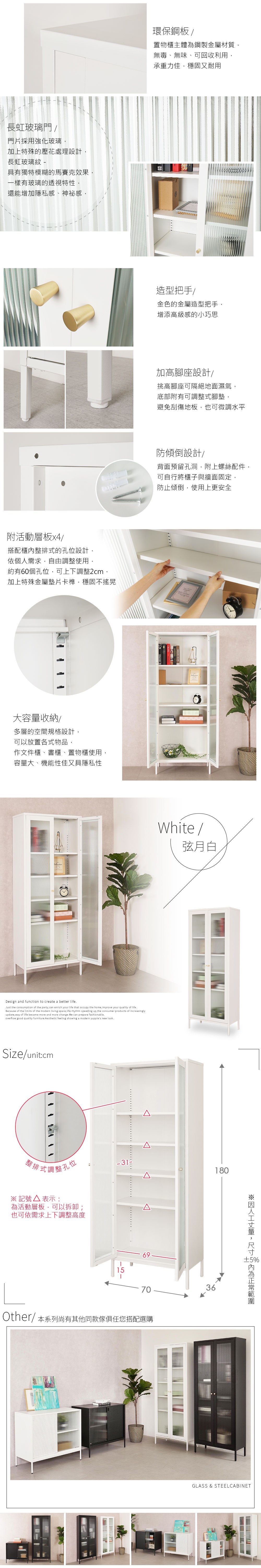 Homelike 喜家居鋼製長虹玻璃書櫃-弦月白(2235)