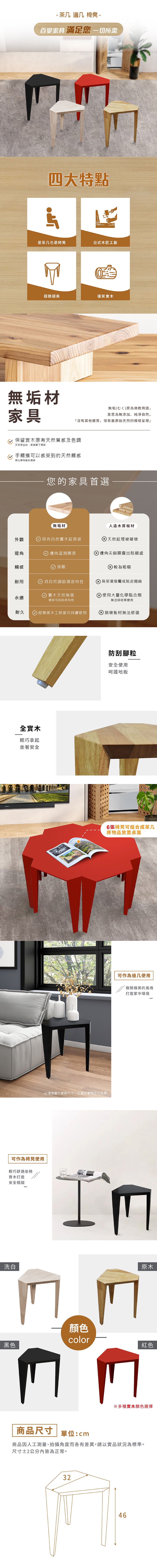 IHouse-日式實木 造型三角椅/椅凳/餐椅紅色