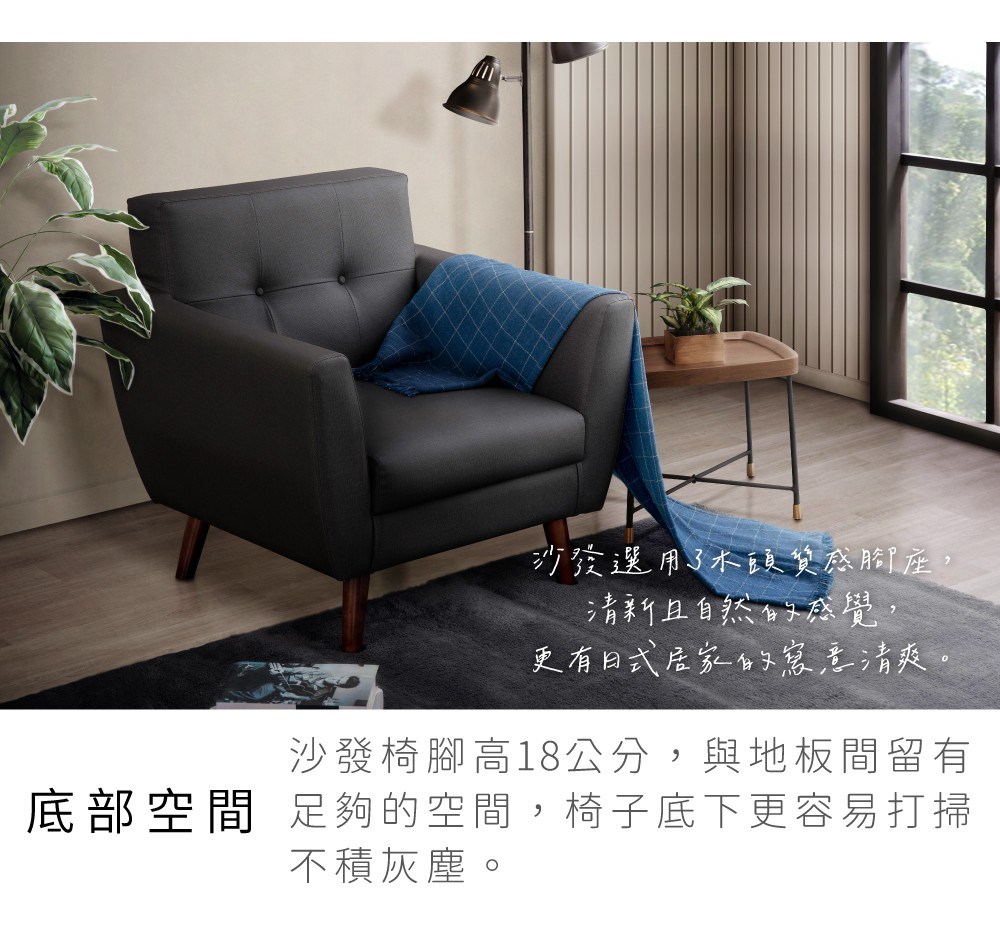 IHouse-大麥克 飽滿回彈貓抓皮沙發 1人座牛仔黑#5377
