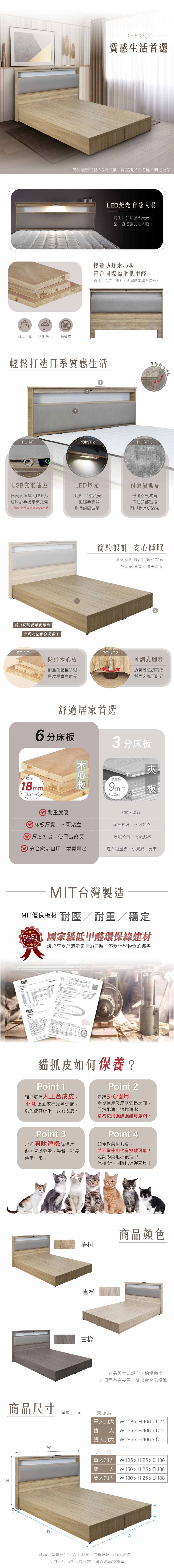 【本木】日比野 LED燈光臥室二件組-雙大6尺 床頭+六分底梧桐