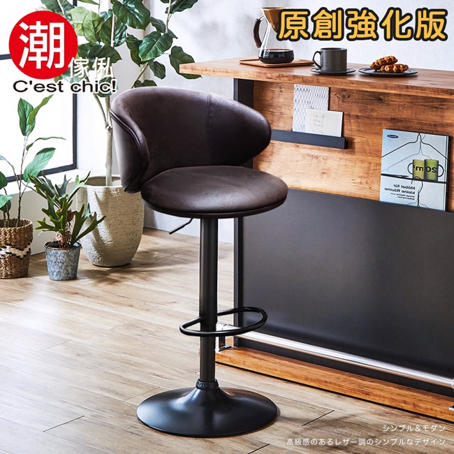 【C'est Chic】Barton巴頓吧台椅(皮質)-深咖啡