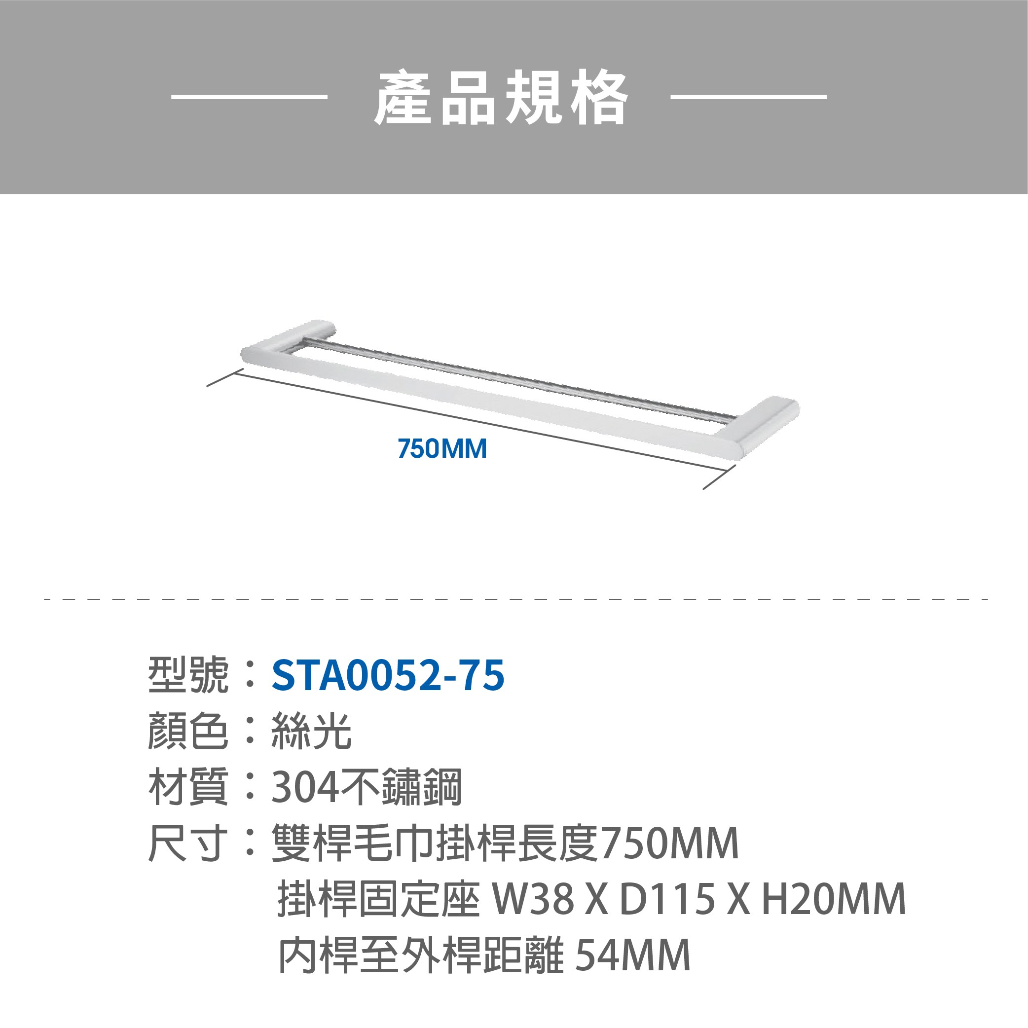HCG雙桿不鏽鋼毛巾架 /BA8274S