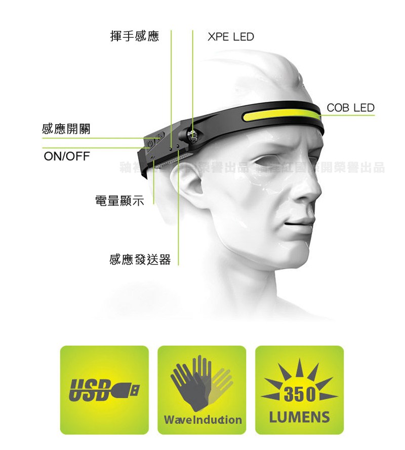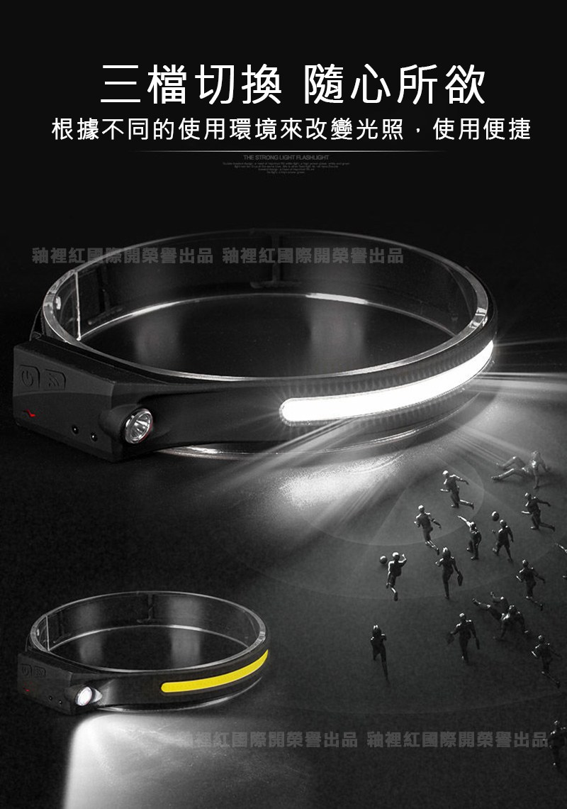 【灰熊厲害】全視角超輕量USB充電感應式運動頭燈/頭戴式工作燈(2入)一般款