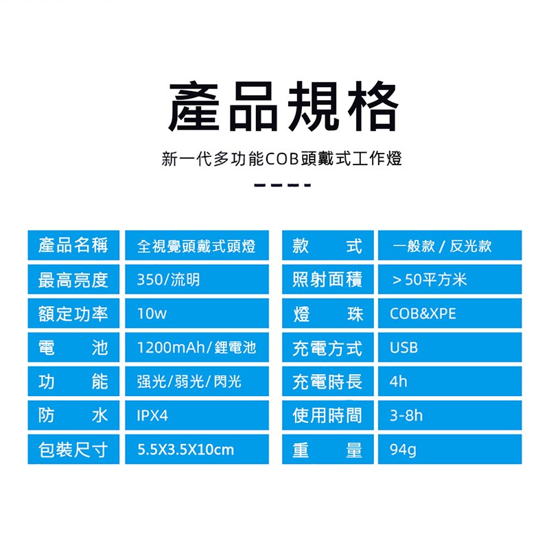 西格傢飾 270度全視線夜間運動頭燈 10W 1200mAh DC5V 黑色 1個