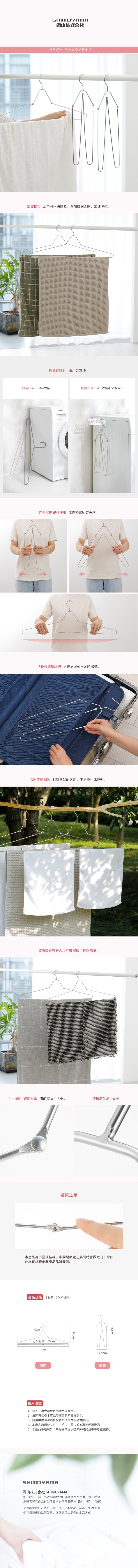 【日本霜山】304不鏽鋼折疊式衣物/浴巾晾曬架-3入