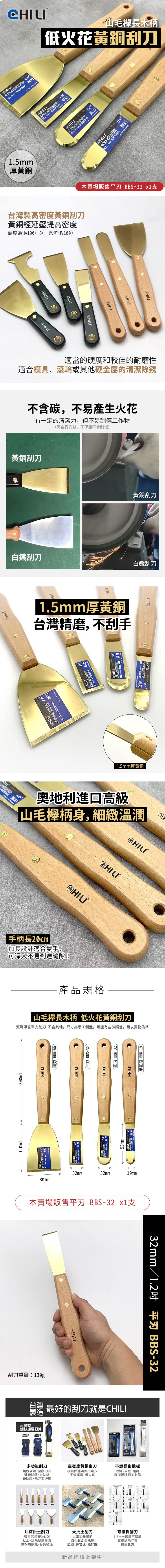 CHILI 32mm/1.2吋-長木柄 低火花黃銅刮刀-圓刃 BBR-32