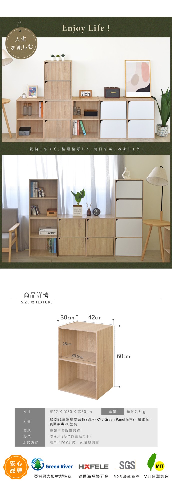 【TZUMii】 簡約加高二空櫃-2入組 淺橡木色