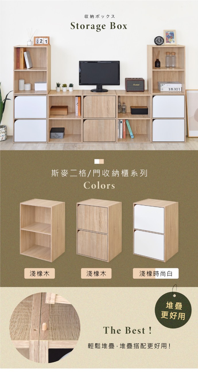 《HOPMA》斯麥可堆疊二格收納櫃(2入) 台灣製造 二層空櫃 儲藏櫃 書櫃 置物櫃 玄關櫃 展示櫃-淺橡(漂流)木