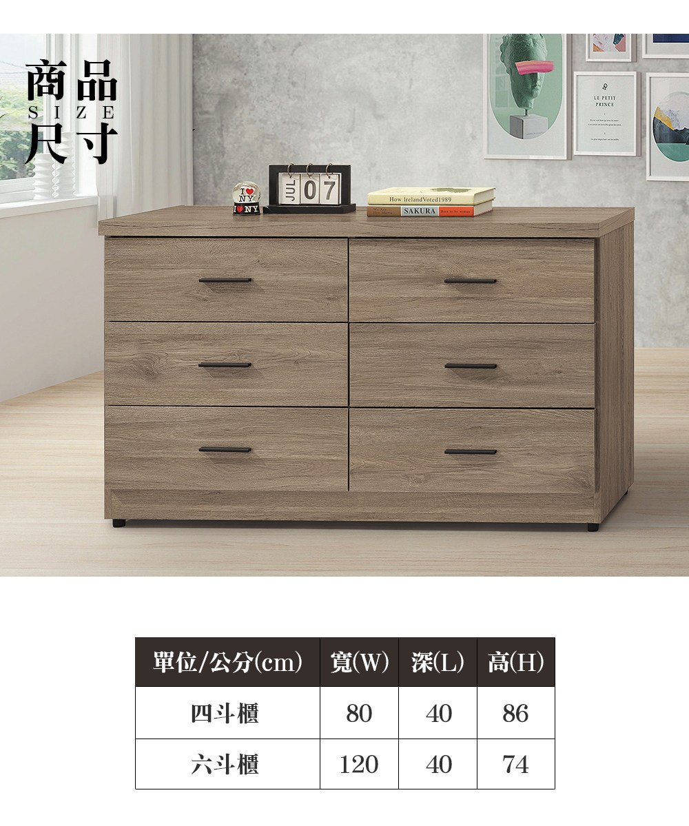 【歐風別館】捷克灰橡色六斗櫃【另有仿古梧桐色】【基隆至台中免運費】