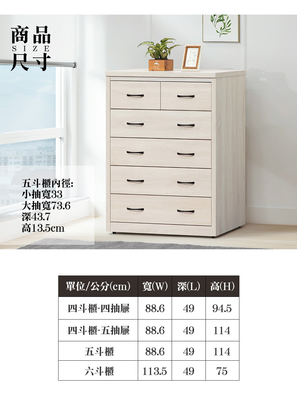 【顛覆設計】朵夏白榆木色4尺六斗櫃