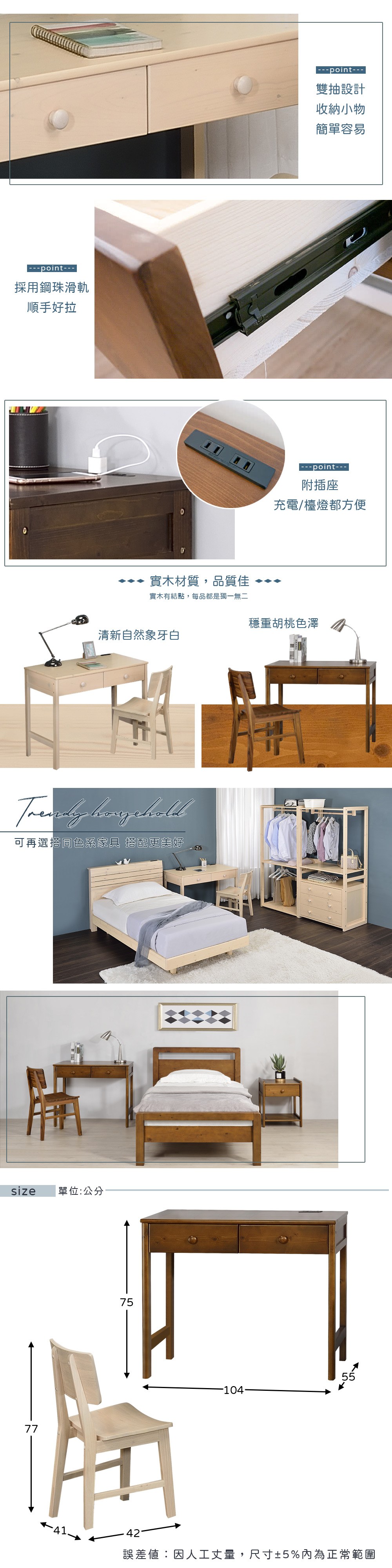 點我下載Homelike 喜家居實木書桌椅組(2色可選)(2281)象牙白