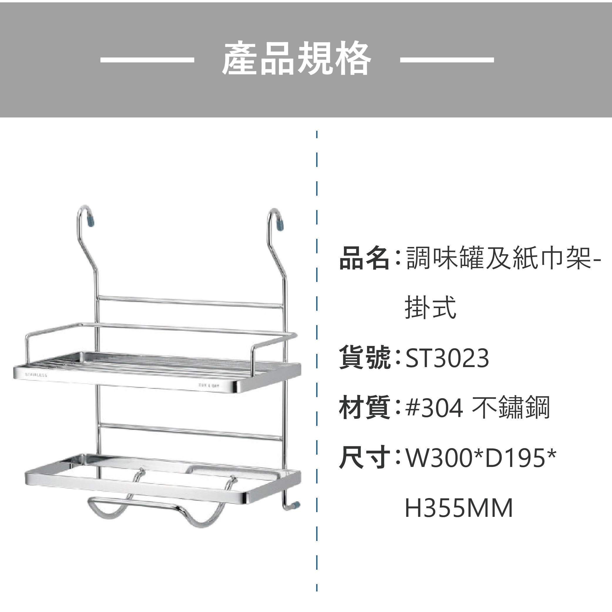 DAY&DAY 日日家居 ST3023C 調味瓶/紙巾架 #304 不鏽鋼 330 x 140 x 300mm 銀色 1個
