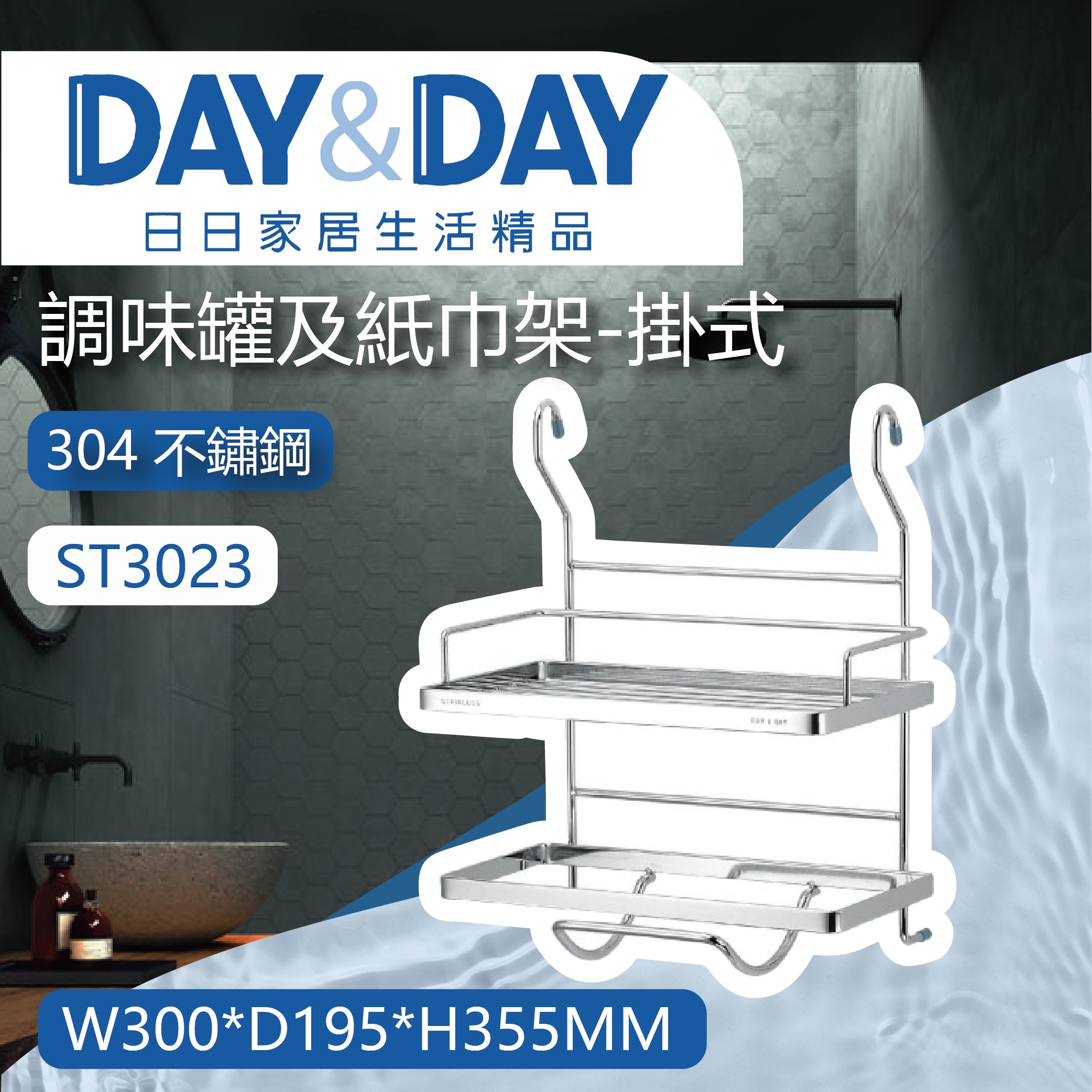 【DAY&DAY】日日衛浴 304不鏽鋼 調味罐及紙巾架-掛式-ST3023