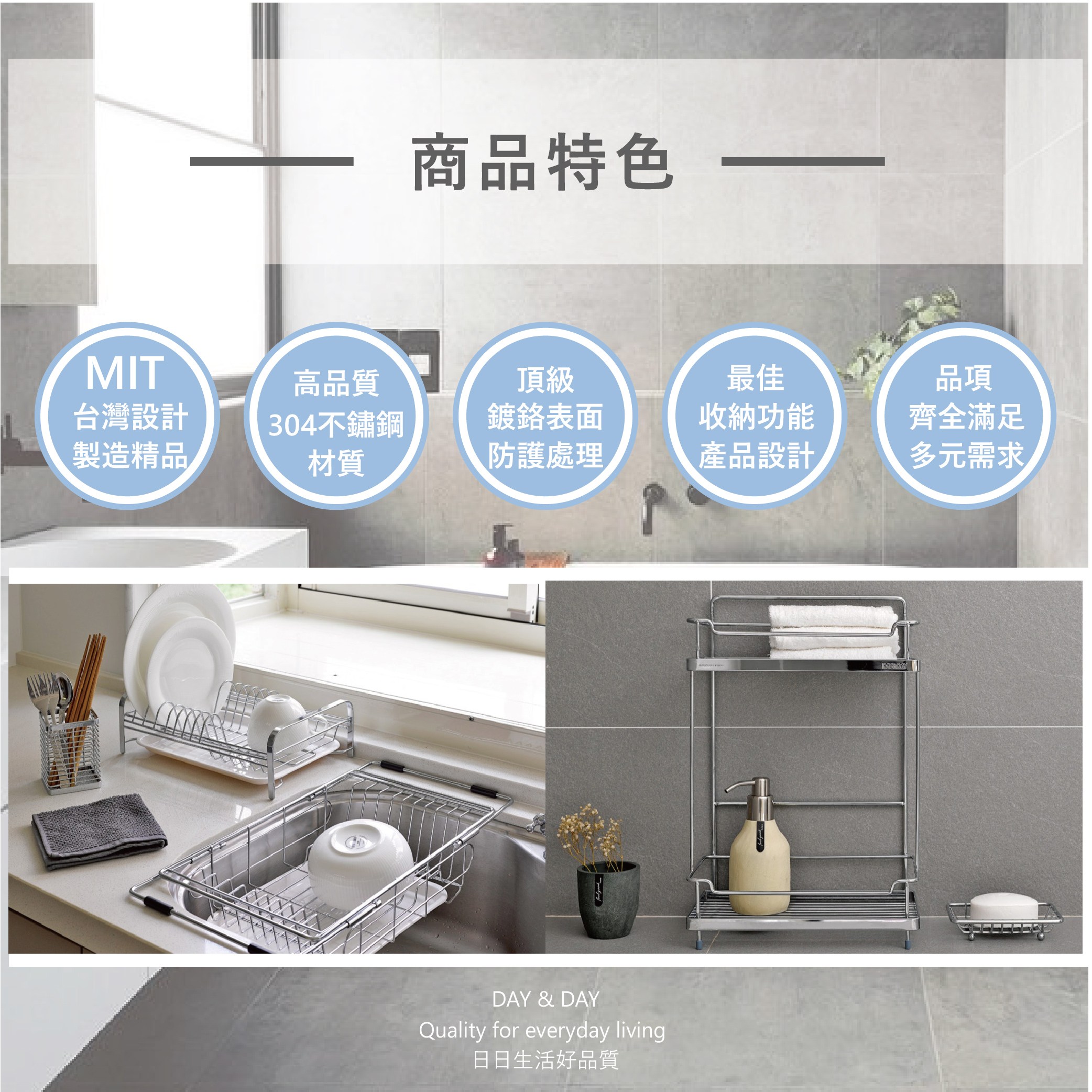 【DAY&DAY】日日衛浴 304不鏽鋼 桌上型雙層碗盤架 - ST3008D-2